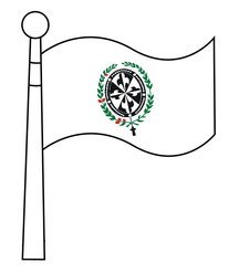 La bandera del colegio El Rosario es blanca y en el centro se encuentra su escudo.